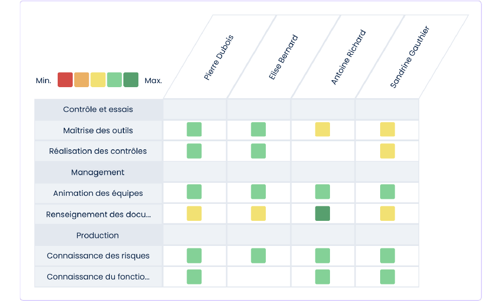 Grâce à un l'import de votre référentiel de compétences de chaque expertise et des grilles d'évaluation sur mesure, nous vous accompagnons dans l'identification des profils les mieux adaptés pour vos divers projets.