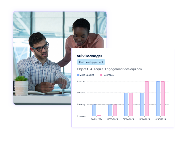 Le rôle managérial s’enrichit d’une dimension de coach : accompagner, valoriser, et faire grandir. Les outils de suivi d’activité et d’évaluation permettent à chaque manager d’adapter son accompagnement en fonction des besoins individuels. Cette approche crée un cadre clair et bienveillant, propice à la progression continue.