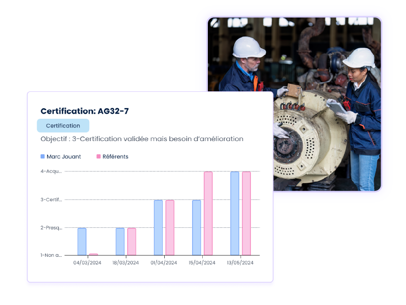 Grâce à nos outils de suivi, vous pouvez suivre en temps réel la progression de chaque collaborateur. Cette visibilité vous permet d'identifier rapidement les points d'amélioration et d'ajuster les parcours selon les besoins individuels.