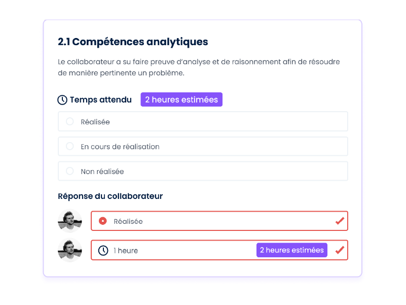 Avec la création de questionnaires personnalisables, vous pouvez concevoir vos propres grilles d’évaluation, adaptées à chaque contexte : missions, projets, ou périodes de montée en compétences.